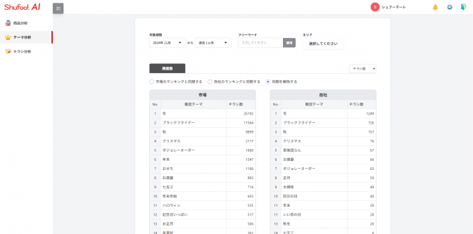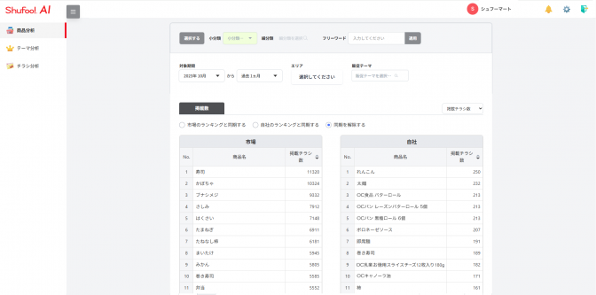 掲載商品のトレンドやテーマ、自社チラシの価格競争力が即時分析可能に